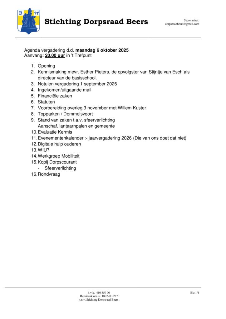 De vergadering van de dorpsraad is openbaar. Wel graag aanmelden.